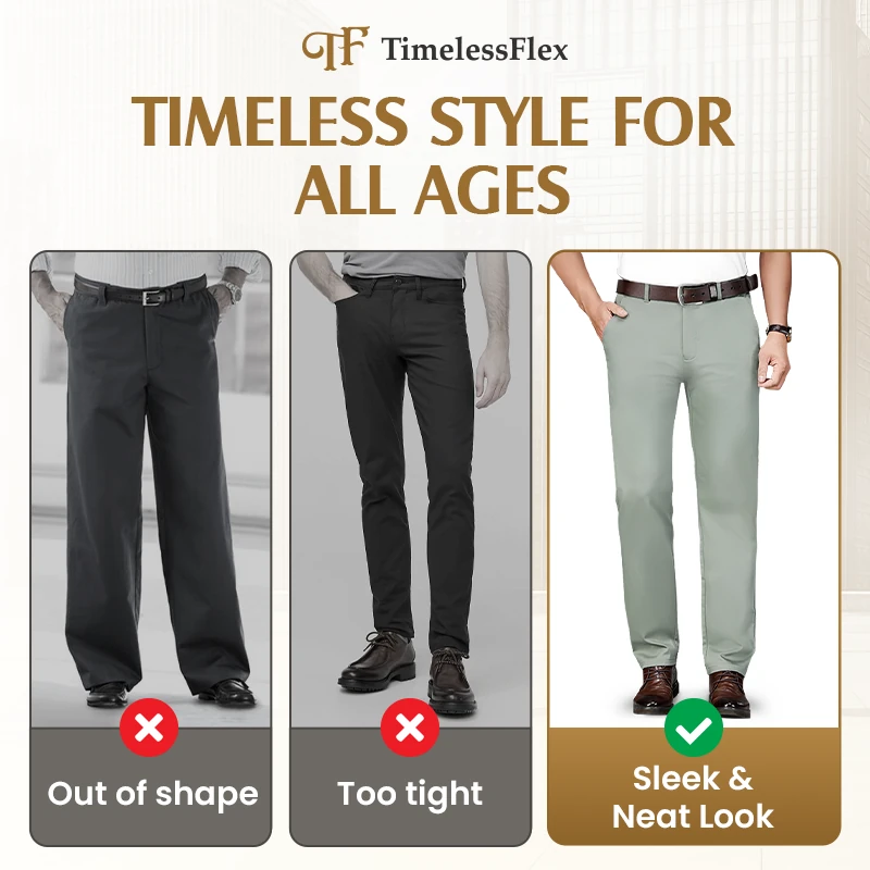 TimelessFlex's elegant straight fit flatters every curve just right—never too tight or loose, ensuring you always look and feel great!